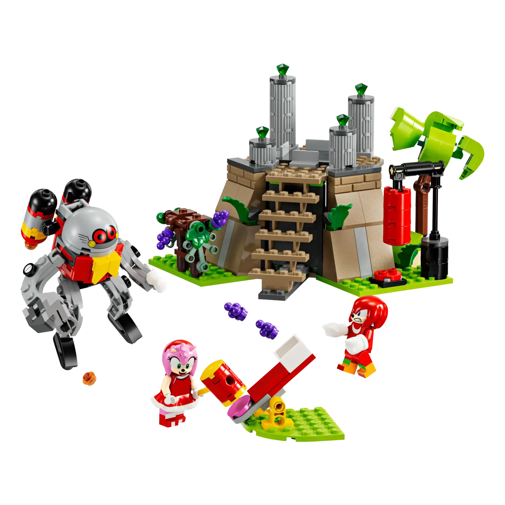 Deze coole Sonic speelset is fantasierijk speelgoed waarmee fans samen met Knuckles en Amy verhalen kunnen bedenken: van sporten en druiven oogsten tot het verdedigen van het heiligdom en de Chaos Emeralds. Kinderen kunnen de Eggrobo verslaan, de Picky redden en zich daarna ontspannen met een lekkere snack.